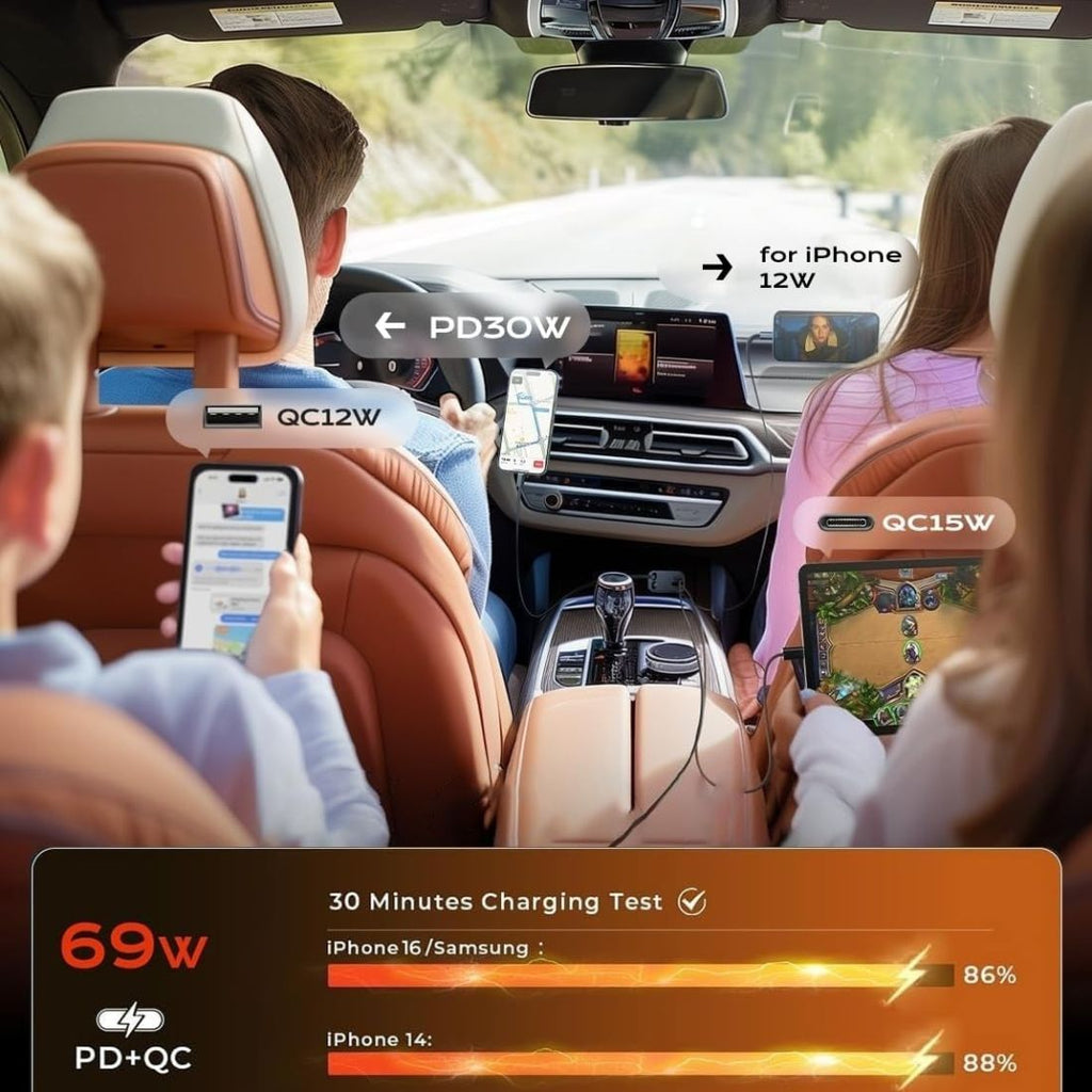 🚗⚡ Multi-Device Car Charger 69W – Power Up Every Passenger, Fast!