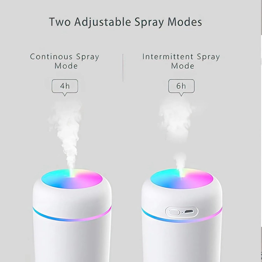 Featuring color-changing LED lights, it doubles as a soft night lamp that creates a relaxing and cozy atmosphere. The silent operation ensures uninterrupted sleep or focus, while the USB-powered design makes it easy to plug into any adapter, laptop, or power bank. Perfect for bedrooms, cars, desks, or your daily workspace!
