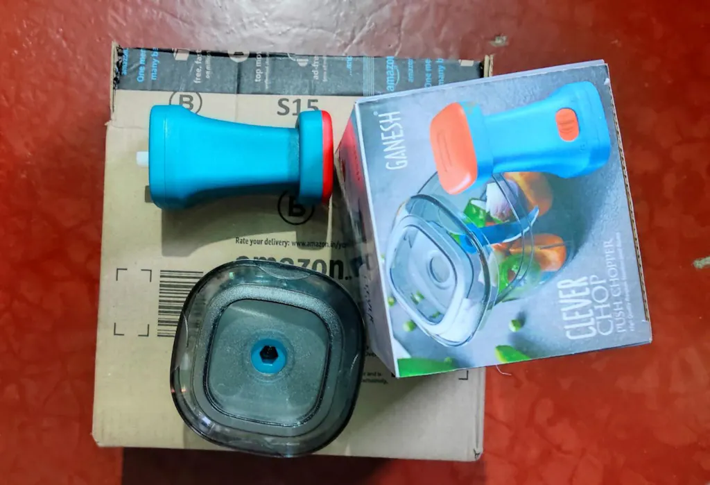 Push Chopper Manual Hand Press Chopper with 3 Sharp Blades – Quick & Effortless Vegetable & Fruit Cutter