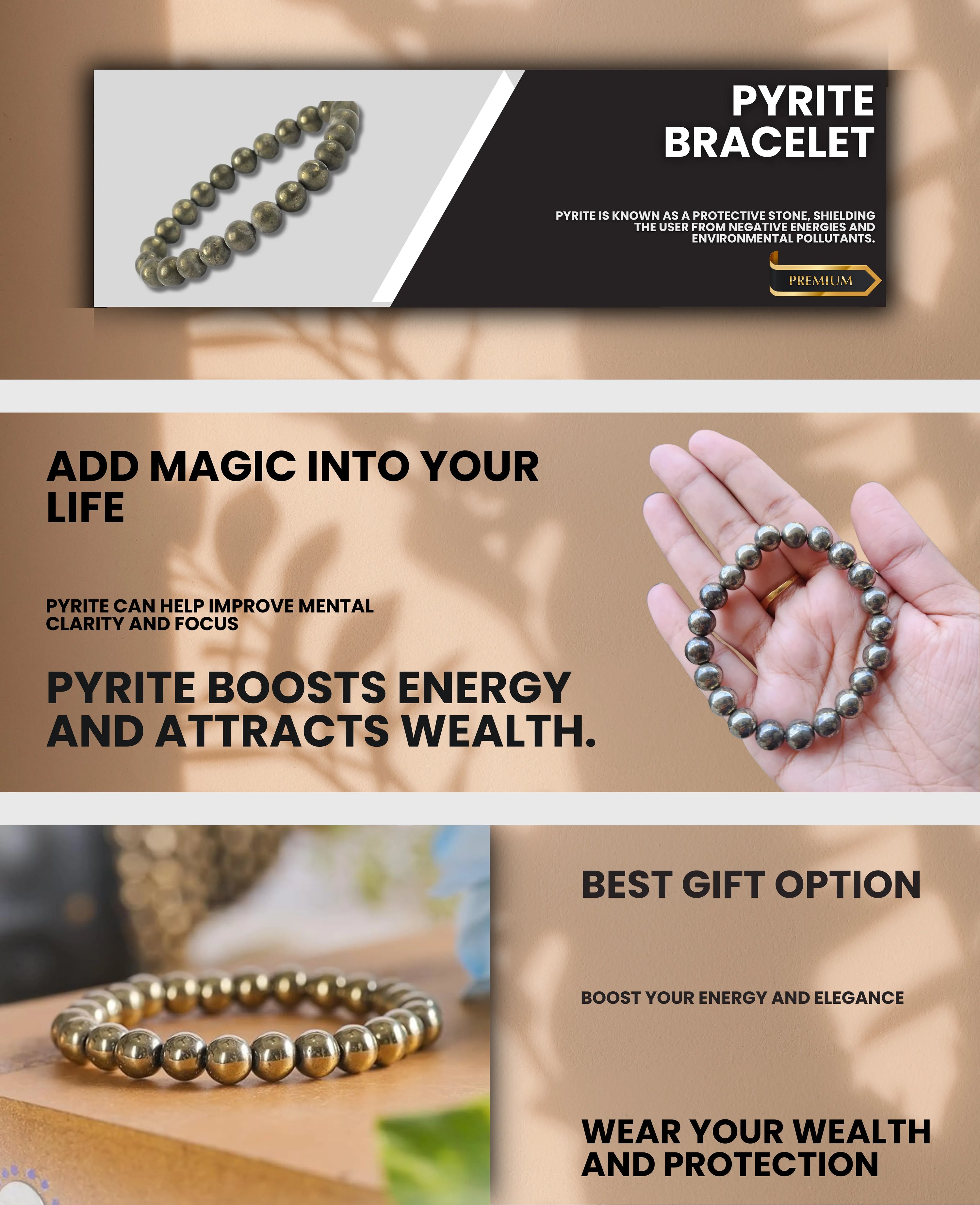 ✔ Genuine Pyrite Beads – High-quality, hand-selected natural Pyrite stones for maximum energy.
