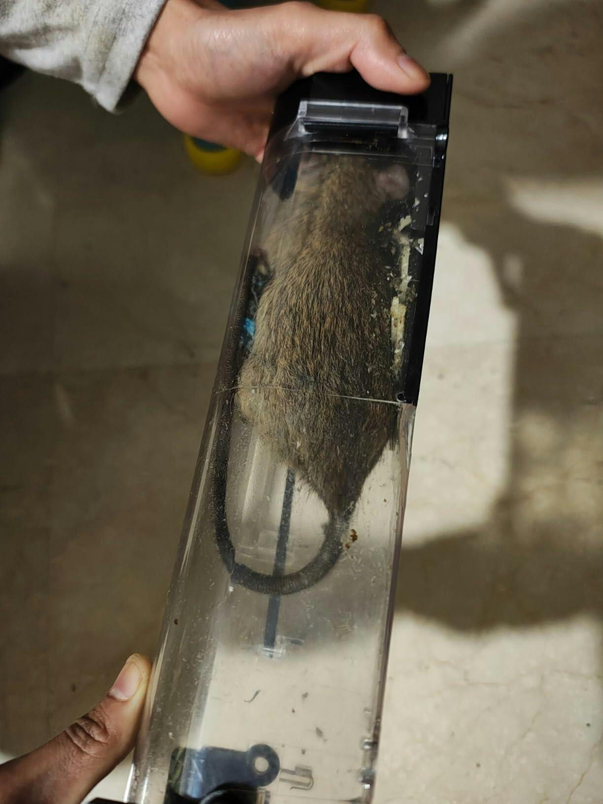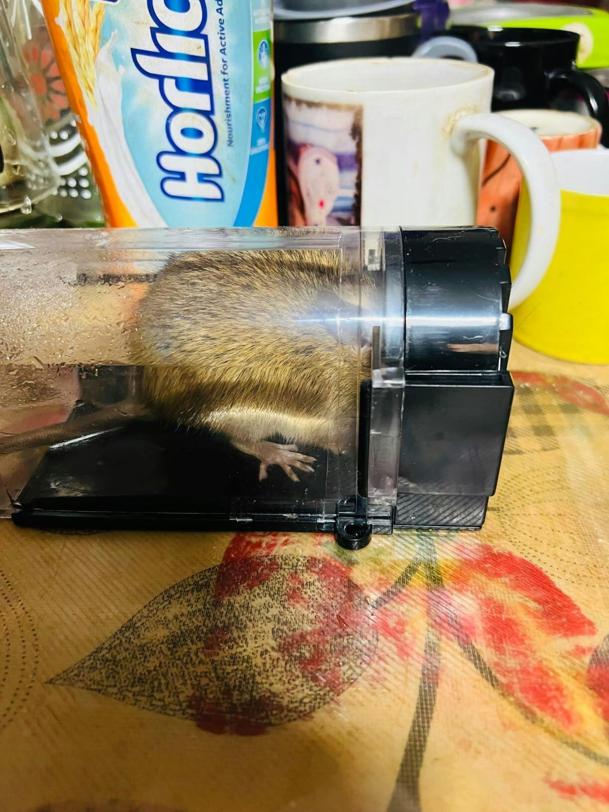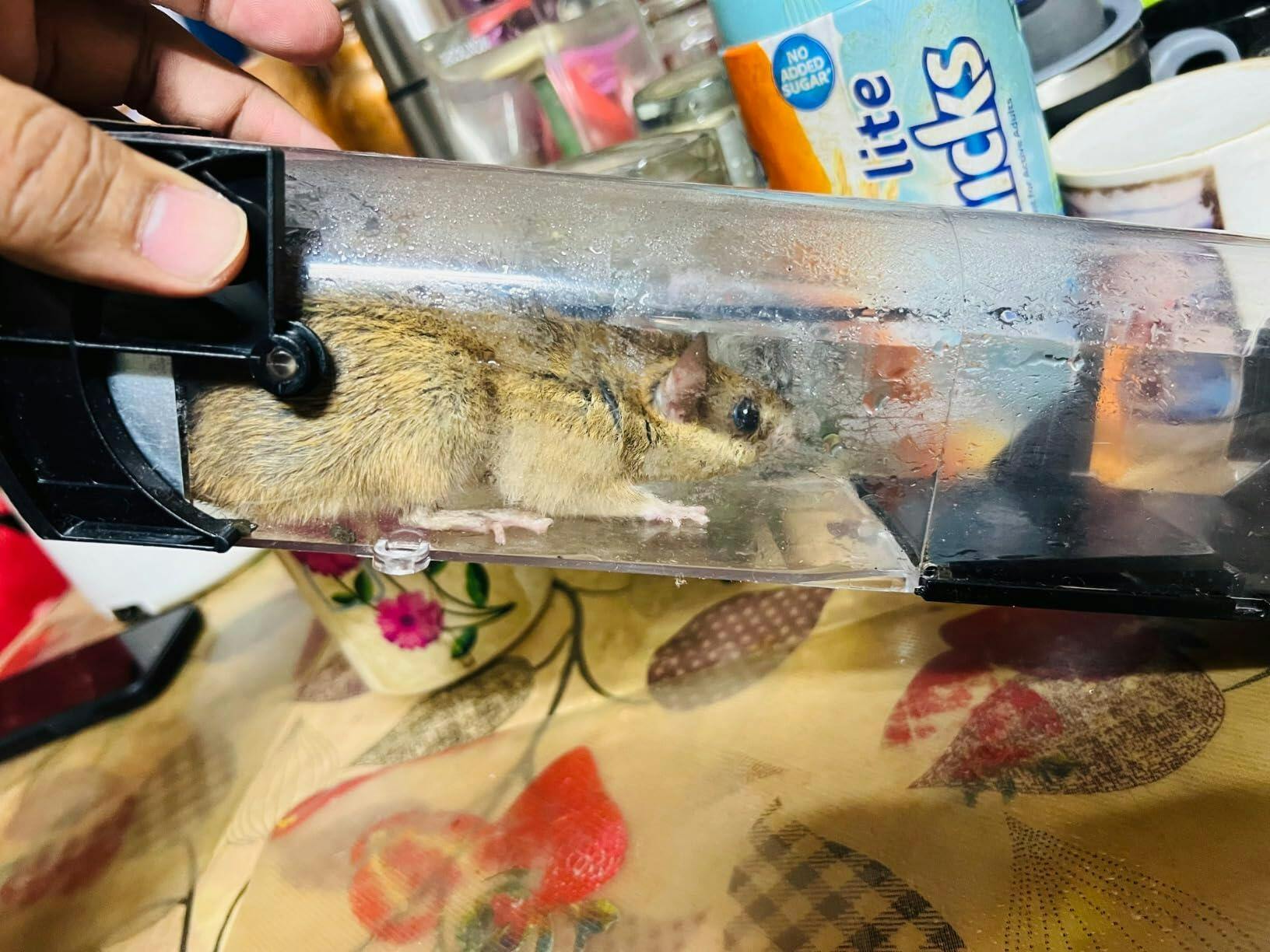 4️⃣ Take the trap outside and release the rat safely, far from your home.